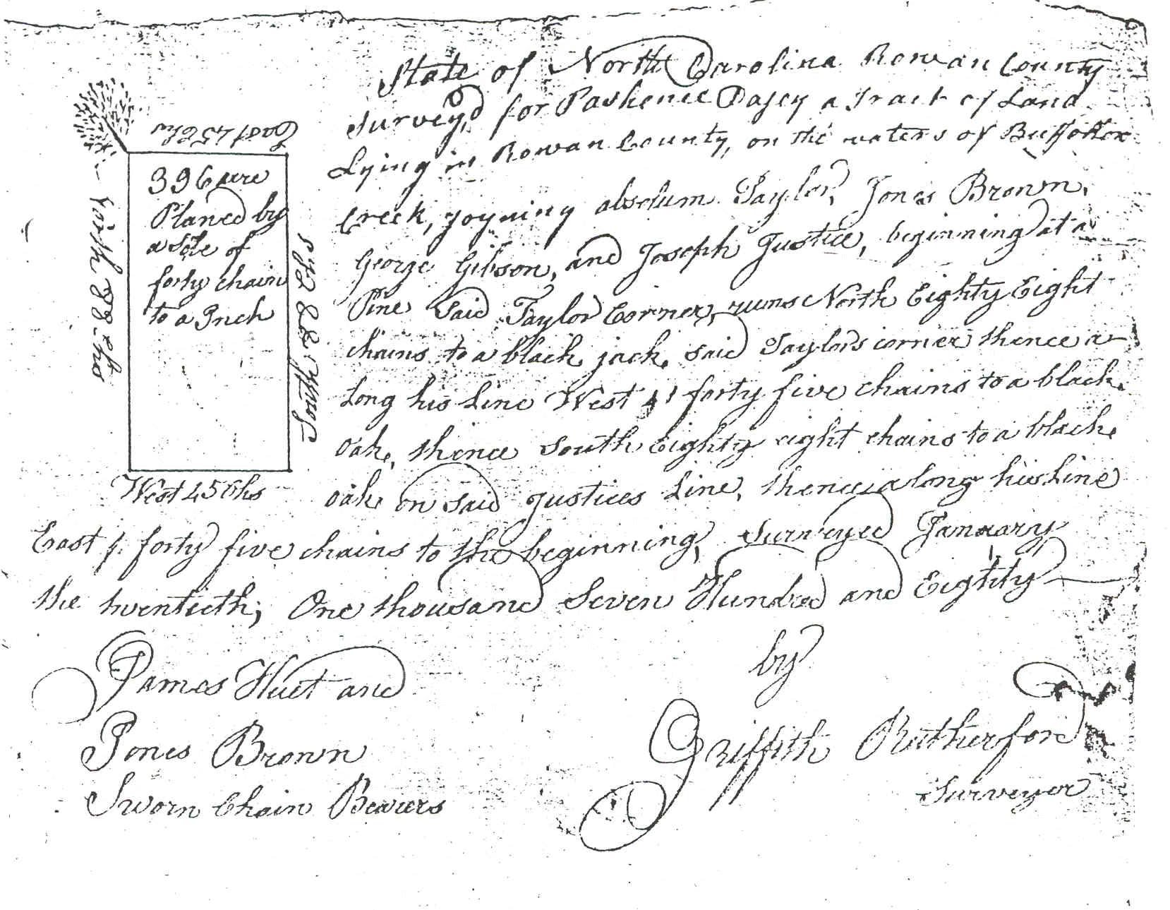 Plat Patience Dorsey Land Grant January 20, 1780 Rowan County, NC |