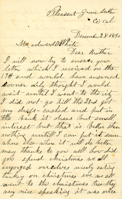 Box 3, East Nicolaus, CA 95622) to Nancy White Custer dated